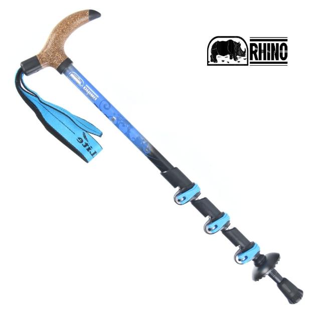 MOMO 限時特價 【RHINO】T型握把4節快扣登山杖健行杖(水藍彩繪)