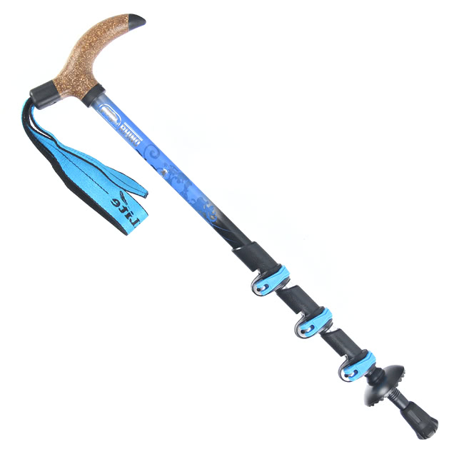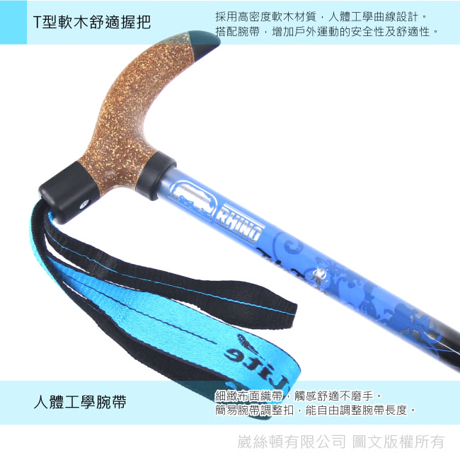 【RHINO】T型握把4節快扣登山杖健行杖(水藍彩繪)